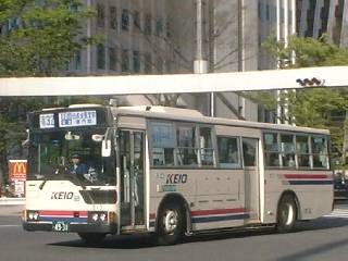 京王電鉄の子会社として1997年より運行を開始した「京王バス」。 ブルーを強調した新デザインとなったが、 「電鉄カラー」のまま走る移籍車両も混在している。 |