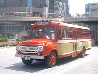 季節限定運行のボンネットバス「夕やけ小やけ号」。 陣15系統 陣馬高原下まで急行運転。 |