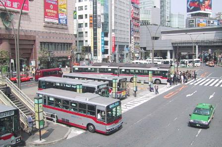 | 東 急 バ ス | 渋谷駅西口に大ターミナルを持つ。 東京都区内南西部から川崎・横浜北西部にかけて、 東急電車各線を補完するように路線網が広がる。 |